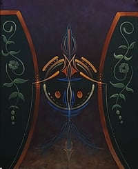 This painting is done, free hand. A centerline is laid out for straightness and compass used to make the circle. The design is then painted pre-hand sign, painting and lettering brushes. It’s the evolution of an art style known as freehand pinstriping. Which was done for years on cars. Prior to that it was done on carriages.