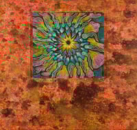 18 x 18 museum quality poster from original mixed media, color pencil and oil paint by T Stratton and Lindsay Corzine. The background on this piece was done by T Stratton the color pencil work centered in the middle of the painting was done by Lindsey Corzine.