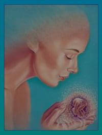 Tenderness, one of the many emotions a mother experiences, while awaiting the birth of a new child.